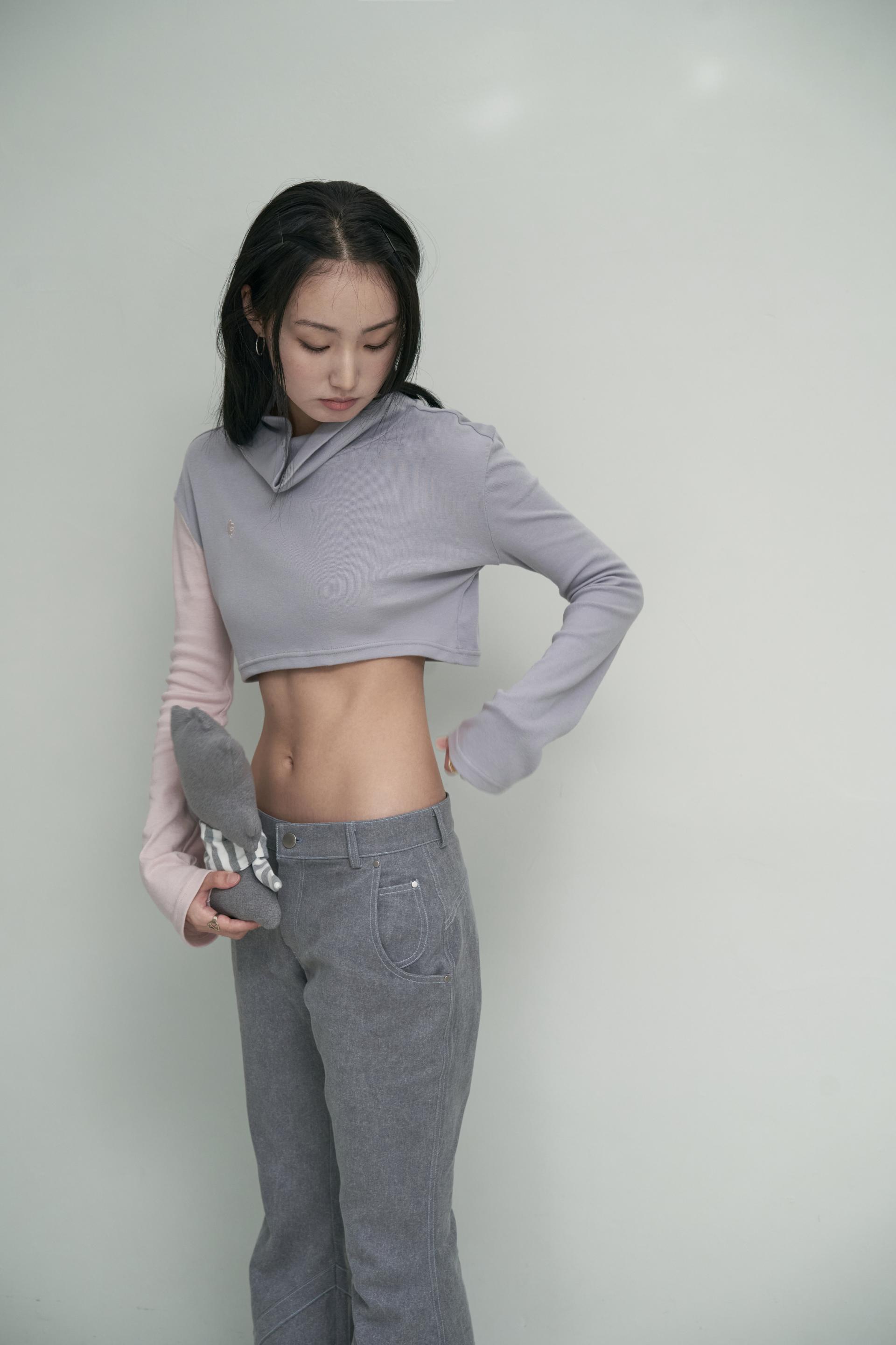 - 한쪽 소매 배색 슬리브