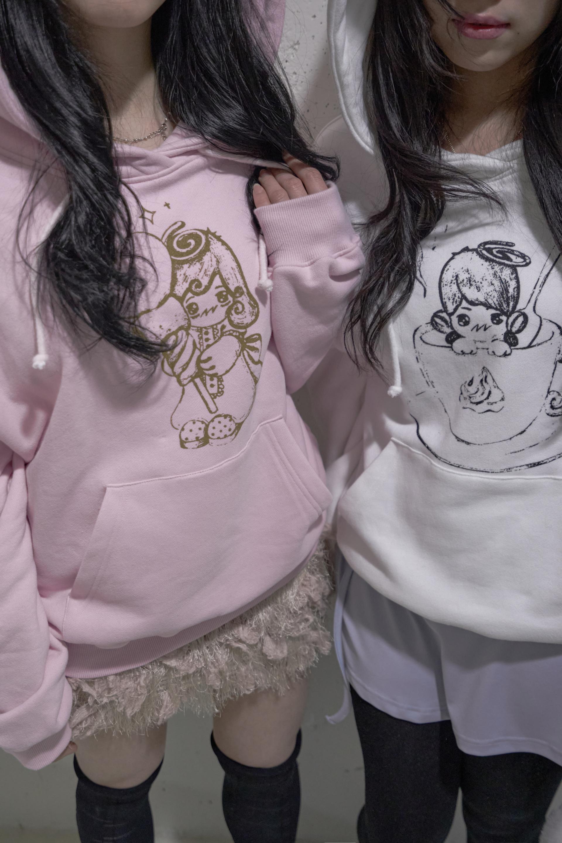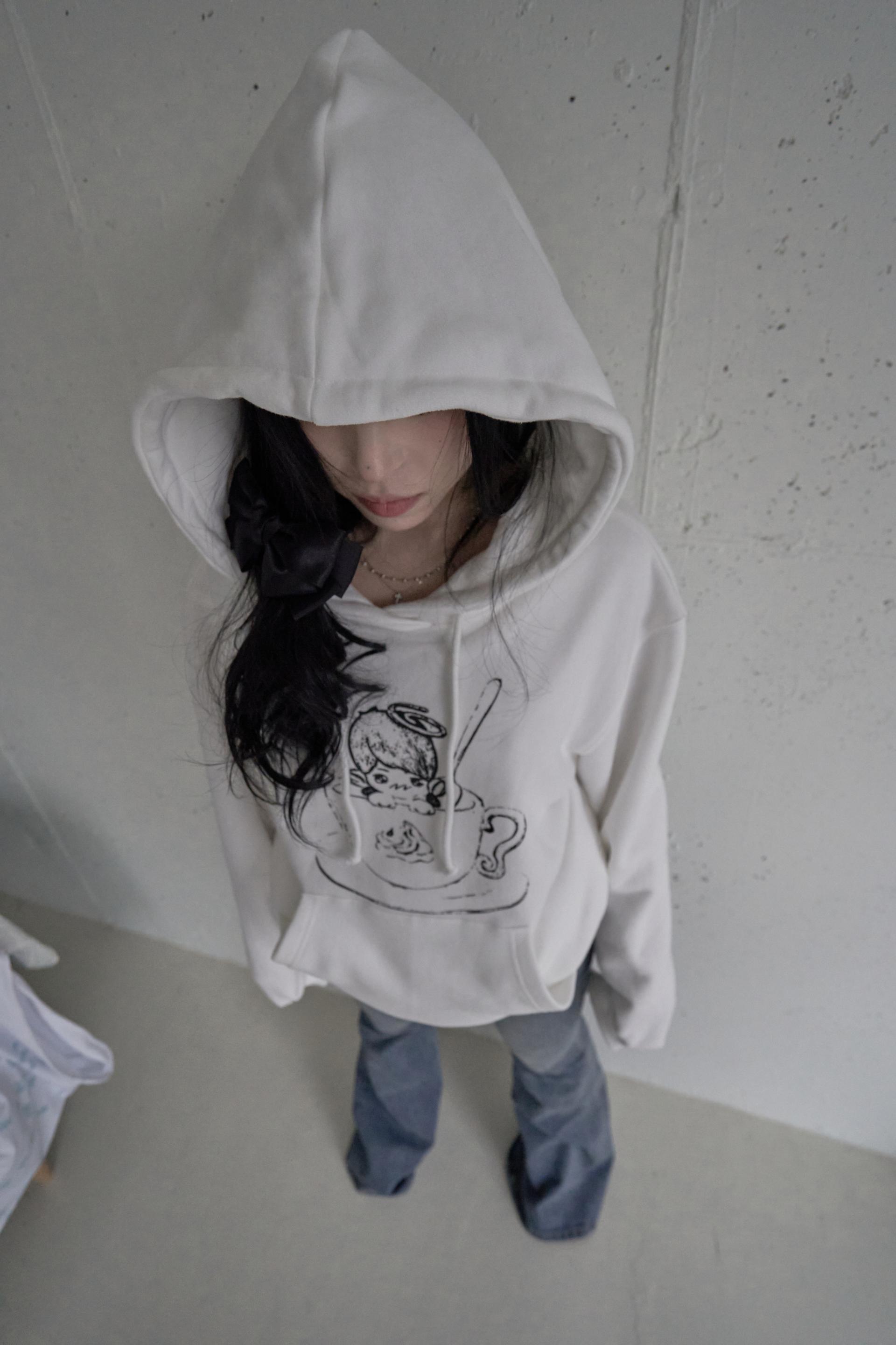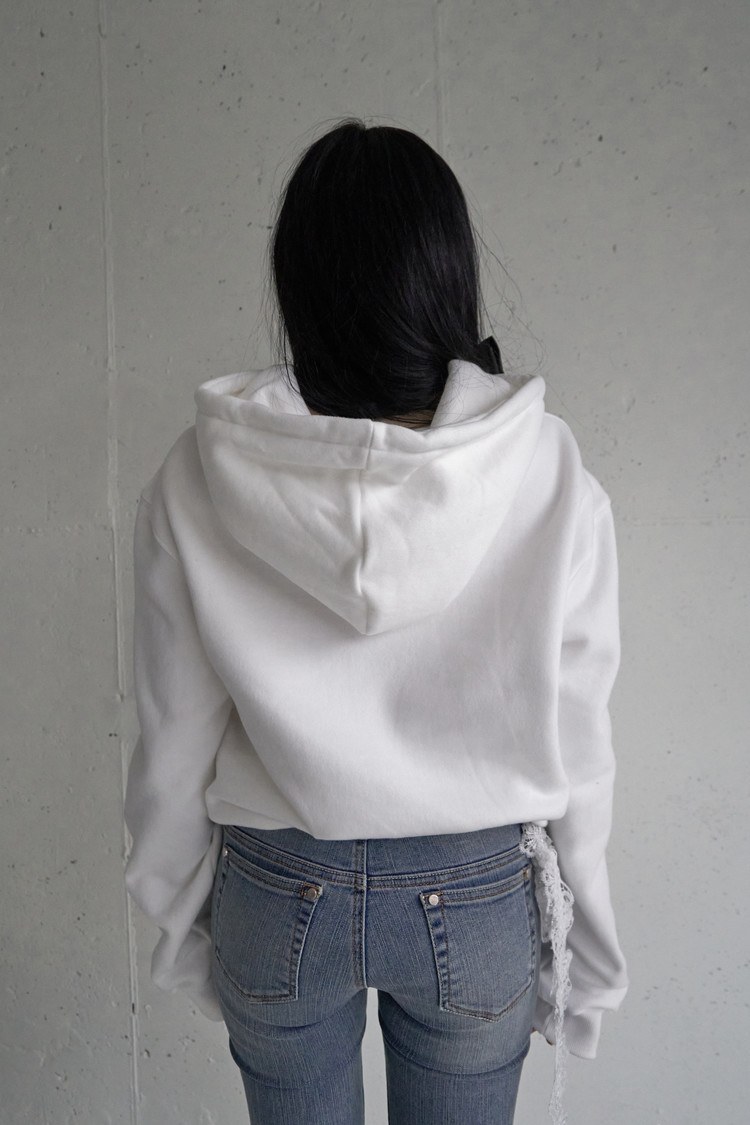 - 화이트 컬러의 후드 스트링
